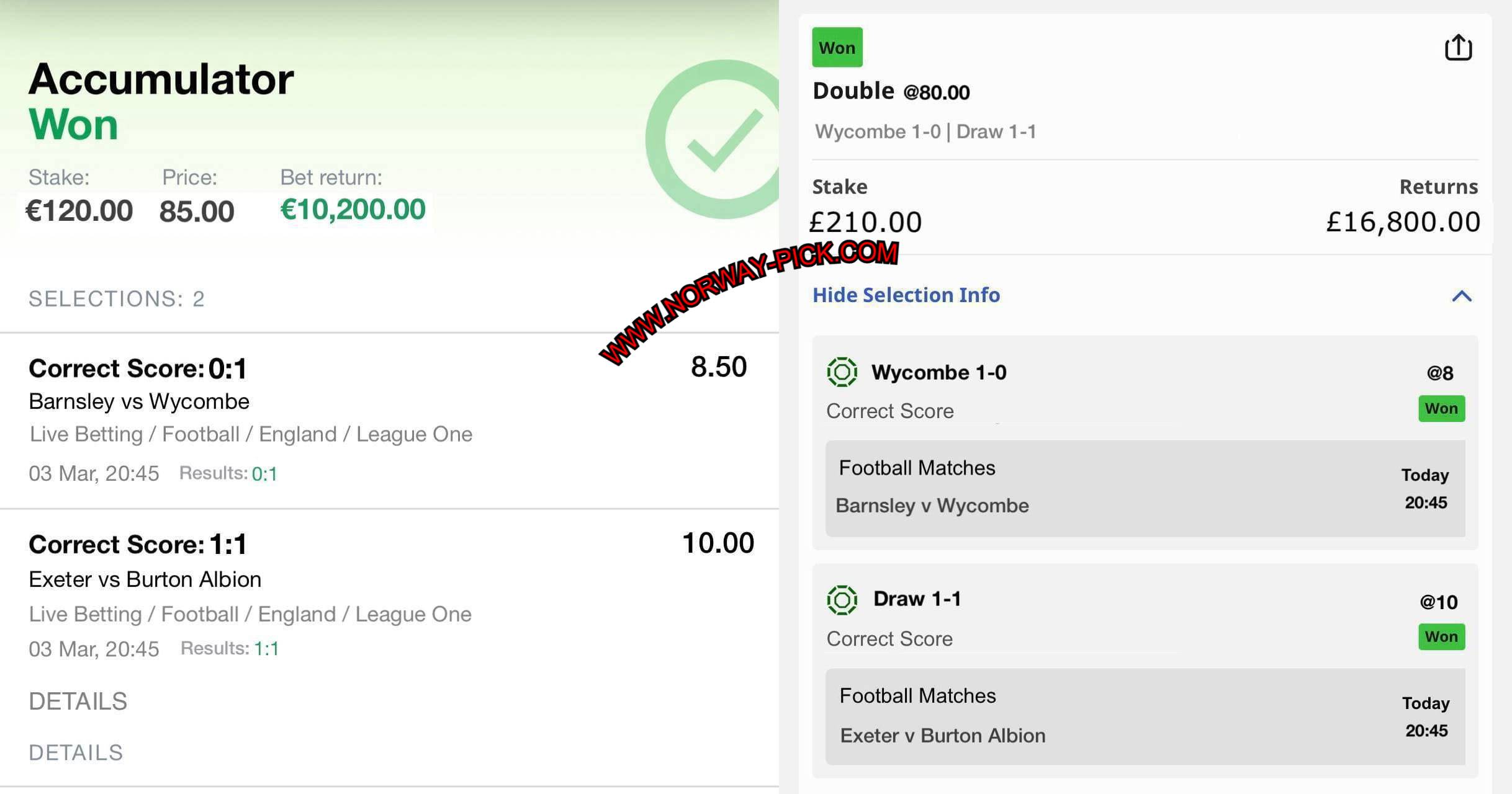 - Here you can buy a fixed match and you will 100% MAKE A PROFIT WITH US, so don’t wait and contact us now. Norway Pick is the best website For Fixed Matches, Correct Score Tips, VIP Tickets, Monthly Subscription, and many more. Here is a Guaranteed Win 100%. Also, we guarantee money back to the buyer. We Sell Manipulated Matches, Fixed Correct Score Matches , And Many more Tips in Betting.