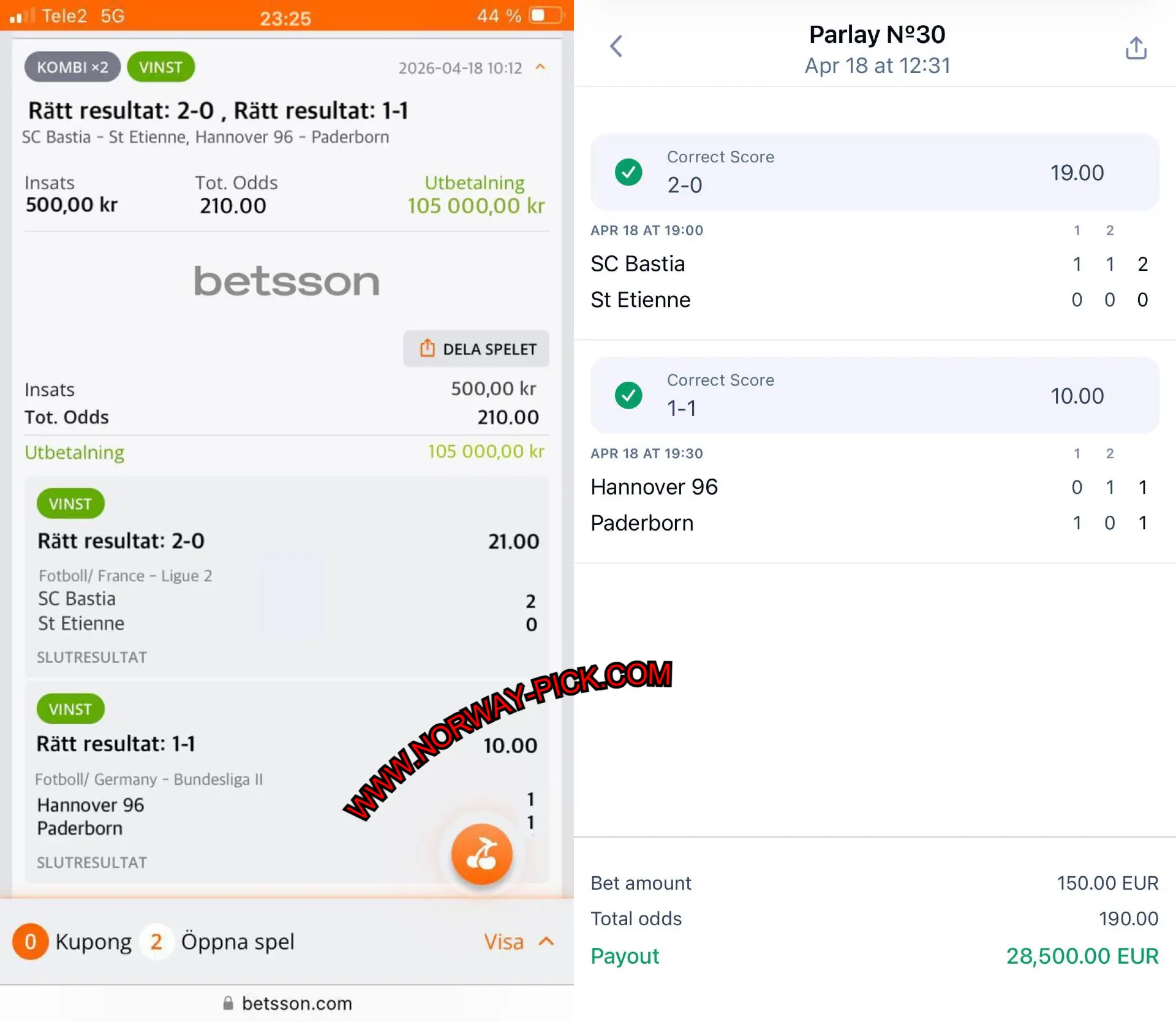| Hannover vs Paderborn | 1:1 (CS) | 10.00 | FT: 1:1 WIN |